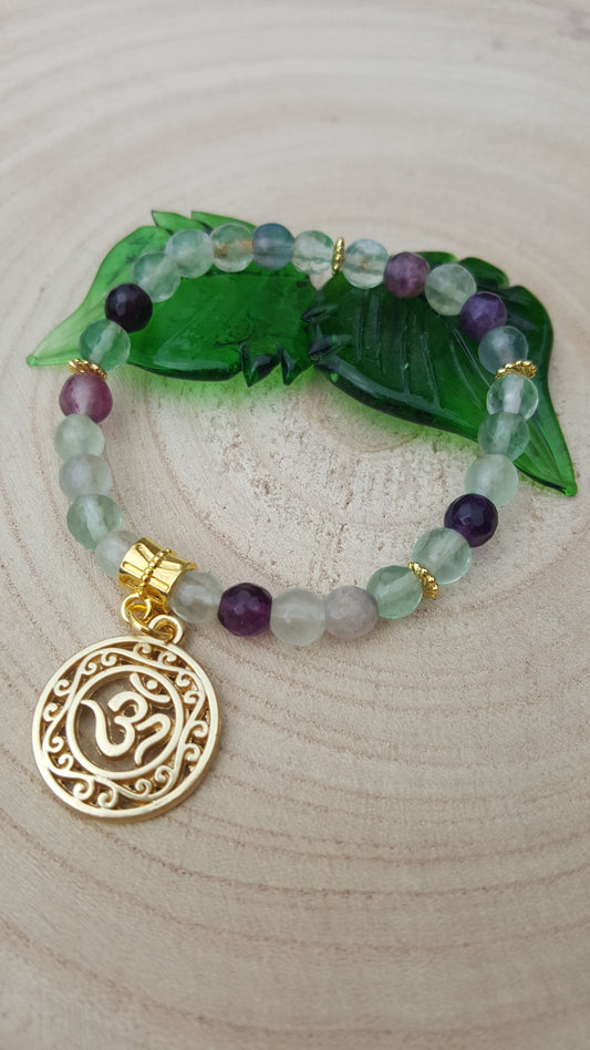 Bracelet facettes Fluorite Arc-en-ciel et charm Ohm/Aum